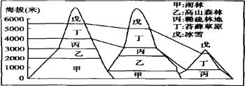 5、单选题 下图为南美洲三座山脉植被分布的差异。读图回答下列2道问题: