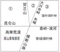 小题1:从图中我国植被的地带性分布来看,从③到②再到①体现了从沿海向内陆的地域分异规律,受降水逐渐减少的影响,形成了从森林到草原再到荒漠的景观特征,故为草原。本题考查差异性——从沿海到内陆的地域分异规律,具体考查中国植被东西向地带性分布,主要考查考生读图能力、调动和运用知识分析问题的能力。