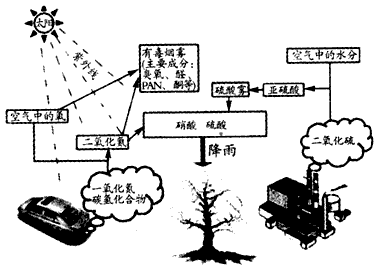 参考答案:(1)事件:光化学烟雾,酸雨。