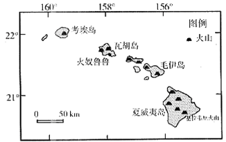 读“夏威夷群岛的位置和火山分布图”及相关资料,回答下列问题。
