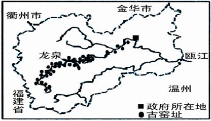 (1)丽水龙泉境内蕴含着丰富的瓷土资源,龙泉青瓷源出北宋早期,据图说出龙泉窑遗址沿河分布的主要原因。(2分)
