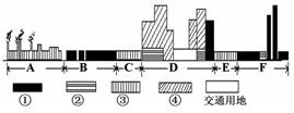 (1)在图A~F中:代表中心商务区的代号是?;代表工业区的代号是?;代表低级住宅区代号是?,代表高级住宅区代号是?。(4分 )