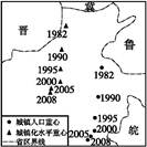 4、单选题 改革开放以来,我国的城镇化进程在加快。下图是“我国城镇化水平和城镇人口重心转移示意图”,读图完成小题。