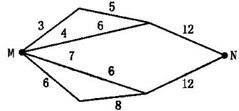 5、单选题 下图为公路运输网,小圆圈表示公交站点,标注的数字表示该段公路上单位时间内可以通过的最大车流量;假设M站的车流量只来自于N,回答24-25题。