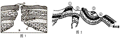 (1)从三大类岩石来看,图1中A处为__________,B处为_________,E处可能形成__________。