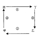 3、单选题 若该图为热力环流侧视图,甲乙为相距不远的陆地,②③为垂直气流,①④为水平气流,则甲乙丙丁四处气压的关系为 ( )