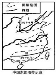 1.根据雨带在I、III地区的时间,可以推论,在一般年份,雨带推移至上海地区的时间大致是:2.如在7月以后,雨带仍未推移进入I地区,我国东部地区将可能产生灾害的状况是