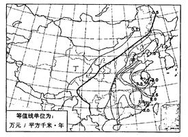 1、单选题 该图为“中国自然灾害平均损失等值线图”,读图回答下面2题。