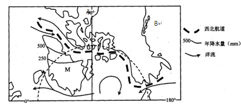 1.“西北航道”对世界经贸意义重大,但一直未开通,主要是因为北冰洋海冰多,对过往船舶的安全构成巨大威胁,所以选择气温较高的夏季航行,海冰面积较小,相对较安全。
