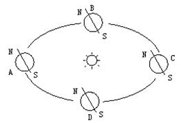 (1)? 用箭头在图中画出地球公转方向和自转方向。