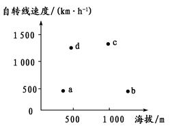 3、单选题 如图是地球表面自转线速度及海拔高度关联图,根据图中a、b、c、d各点判断以下叙述正确的是(? )