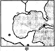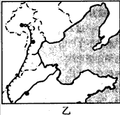 1、综合题 下图中的甲、乙两幽足以某海湾为中心及其周边地区轮廓示意图,读图回答下列问题。