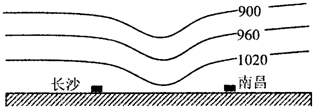 2、单选题  读长江流域冬季某时段近地面等压面(单位:hpa)垂直剖面示意图,回答问题。