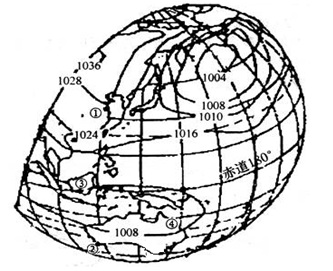 (1)此图表示_________(1或7)月海平面等压线分布图,判断理由是_____________。(3分)