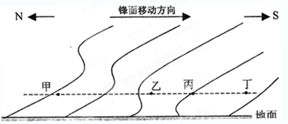 小题3:甲、乙、丙、丁四处,位于冷气团中的有?