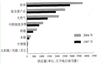 2、单选题 下图为1987年与2004年世界能源供应构成图。下列叙述不正确的是