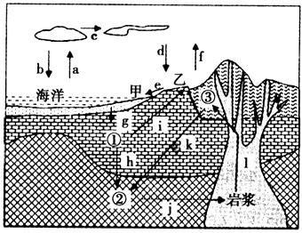 1、单选题  下图为水循环和岩石圈物质循环示意图,其中①②③代表三大类岩石。回答1—3题。