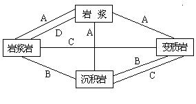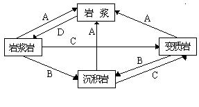 4、综合题 读下面的三大类岩石循环转化示意图(图4—40),分析判断:(7分)