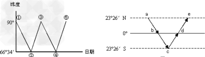 1.三地按纬度由低到高排列正确的是2.若③地为北京,则此时