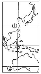 2、单选题 下图中①、②是两个城市的代码。读图完成小题。