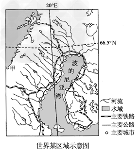 (2)分析海陆分布与地形对甲、乙两地气候形成的影响。