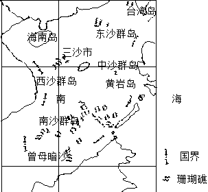2012年6月21日,我国正式公布在海南省建立三沙市,管辖西沙群岛、中沙群岛、南沙群岛的岛礁及其海域。三沙市以其独特的旅游资源优势,强烈地吸引着游客。图示意三沙市的地理位置。