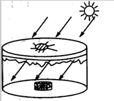 将平底盆放在有太阳光的地方,过足够长的时间后观察。