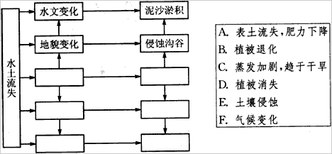 (5)假如该实验模拟现象发生在黄土高原上地表水土流失景观的形成过程,填入字母完成下图。