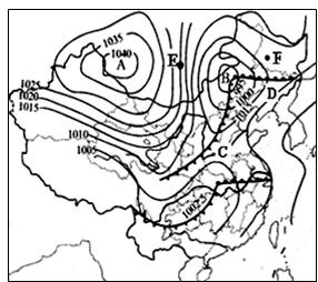 (2)近日, (冷锋/暖锋)将从F地过境。C地在锋面过境后,气温的变化是 。