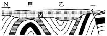 (1)图中字母表示的地质构造是:甲_______;乙______;丁 。