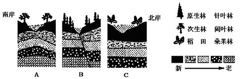 (1)判断上、中、下游河床剖面分别对应的是图中 (2分)。
