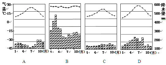 (1)据图中信息描述A、B两城市该时期气候特征的主要差异。(6分)