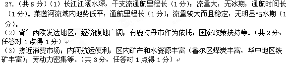 (3)莱茵河畔的鲁尔工业区和我国华中地区(以武汉为中心)均拥有发达的钢铁工业,试比较两地钢铁工业建立和发展的共同优势区位条件。(3分)