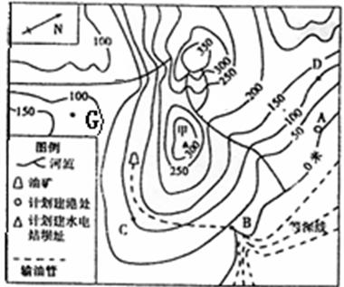 (3)A处在甲山顶的什么方向?D、G两地的相对高度是多少?(2分)