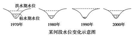 1.该河段水位季节变化最大的年份是2.2000年较1990年水位变化减小,其原因最有可能是流域内