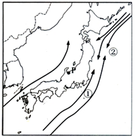 (2)夏季,受东南季风的影响,日本太平洋沿岸降水较多,暖湿气流盛行,当北上的暖湿气流流经寒冷洋面时,很容易形成海雾。