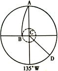3、单选题 该图为极点俯视图,AB是晨线,CD是日界线,读图后回答问题。