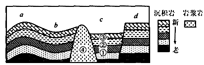 【小题2】①②③④四处的岩层比较,年龄最轻的岩层是( )
