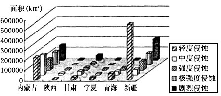 3、新疆的轻度侵蚀和剧烈侵蚀都很突出,是因为