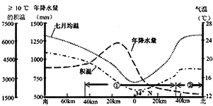 5、单选题 下图是沿我国境内某一经线的气候统计表。据图判断1—3题。
