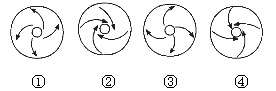 4、单选题 下列四幅气旋、反气旋图中,属于北半球的是:( )