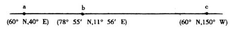 4、单选题 该图一架飞机从a城出发途径b岛附近海域后飞往c城的航线位置。读图回答