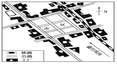 (1)从图中可以看出,工业区分布在城市的外围,形成了“工业包围城市”