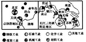 2、综合题 13.比较京津唐地区和长江三角洲地区城市和工业分布图,简要叙述和评价这两个地区工业部门的差异和发展工业的条件。
