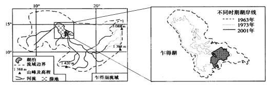 3、单选题  乍得湖是非洲第四大湖,湖水水位常随季节显著变化。读图完成下列各题。