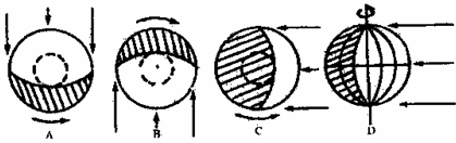 D选项中是侧视图,昼夜平分,是北半球的春分日(3.21.前后)或者是秋分日(9.23.前后)。
