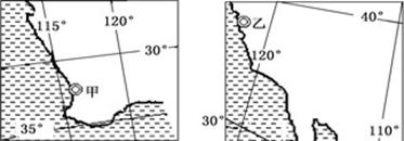 1.若甲、乙两城市分别使用东八区和西八区区时,在一个太阳日内,两城市同属一天的时间为2.甲城和乙城所在地区气候类型相同,而且该气候在当地分布面积均较小,其原因主要是
