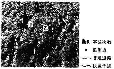 2、单选题  下图是利用地理信息技术制作的某城市中心城区月交通事故次数示意图。读图,回答1—2题。