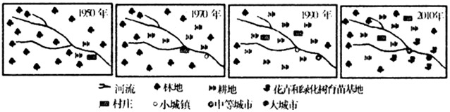 2、单选题 下图是我国东部某地区土地利用状况变化过程示意图。据图完成第1~2题。