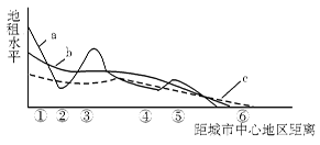 5、单选题 读某城市工业、商业、住宅用地的付租能力随距离变化示意图(下图) 完成问题。